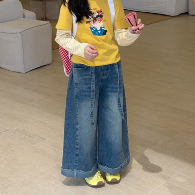 비다이어리.스트랩와이드데님청바지